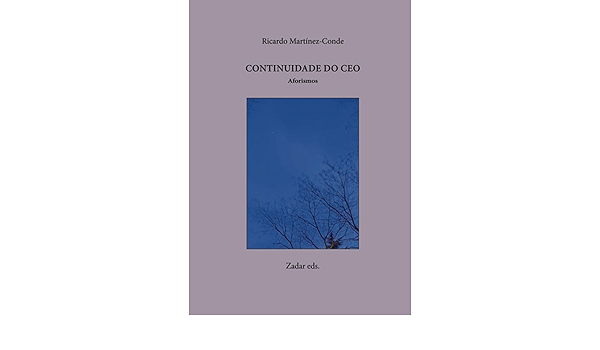 "Continuidade do ceo", es el nuevo texto aforístico-poético de Ricardo Martínez-Conde. Realizó los estudios de Filosofía y Letras en las universidades de La Laguna, Valladolid y Complutense de Madrid, donde cursó el Doctorado especializándose en la relación Historia-Literatura. Su obra como escritor es bilingüe, habiendo publicado tanto en gallego como en castellano. Como ensayista y crítico literario ha colaborado tanto en prensa (La Voz de Galicia, El País) como en revistas especializadas (Clarín, Revista de Occidente).