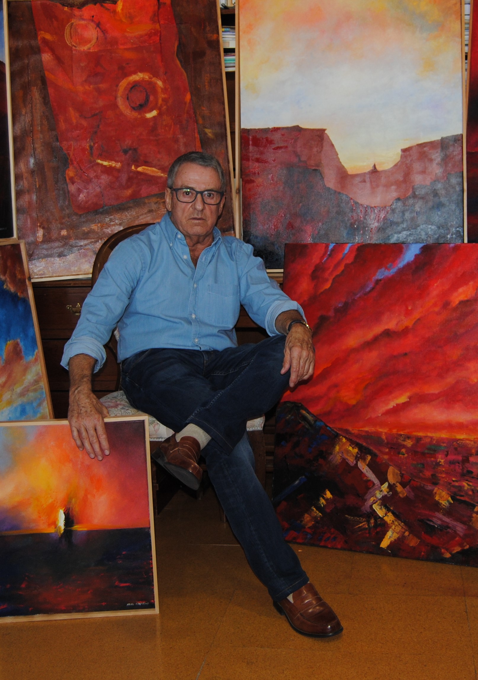 Cada vez más artista que médico, su pasión por el arte inunda con fuerza sus venas creativas, traduciéndose en una serie de abstracciones cuyos rojos y ocres cargados e intensos prefiguran una coctelera de emociones que se esparcen libres por los lienzos.