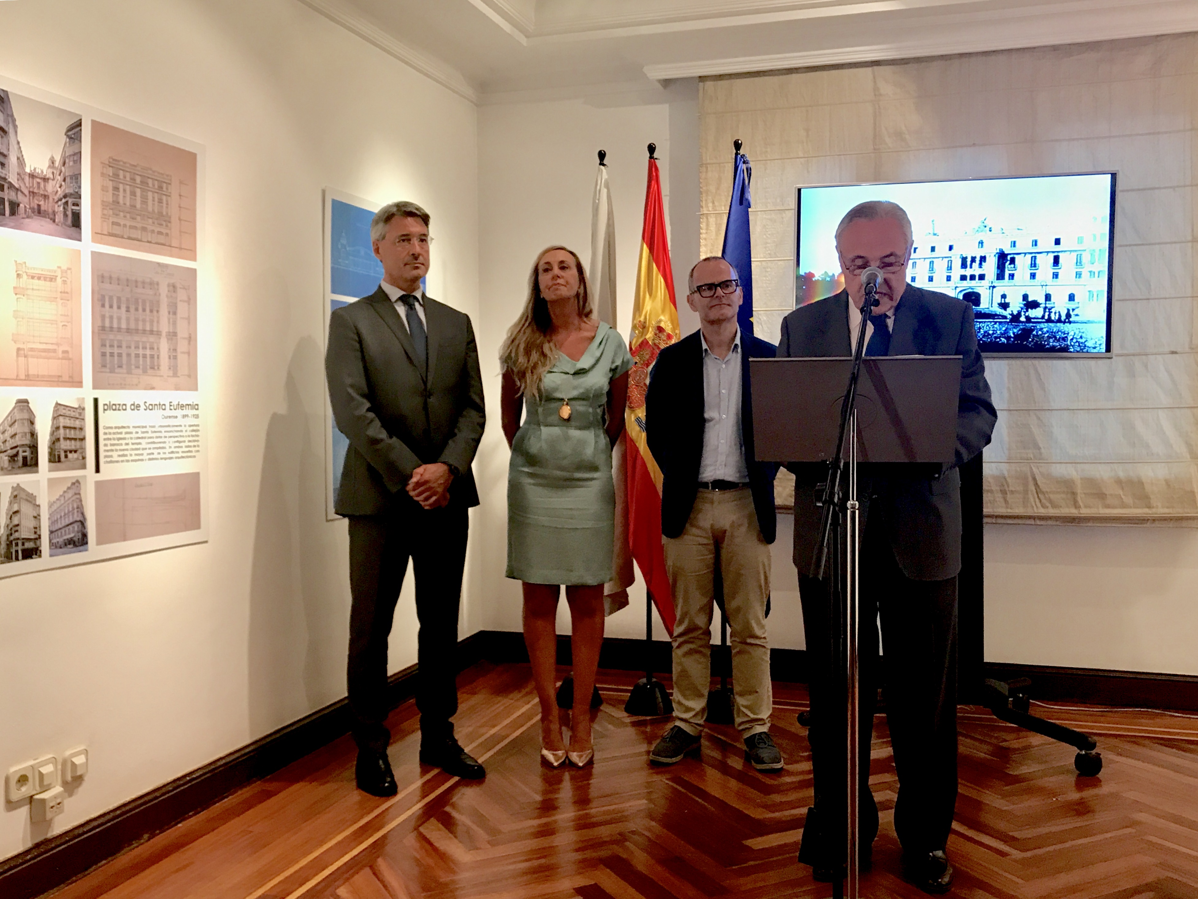 Ónega, tras las palabras de bienvenida, señaló que "es un honor y un privilegio" para la Casa de Galicia acoger esta exposición y contribuir a difundir en Madrid las obras y proyectos que realizó el reconocido arquitecto. "En esta pequeña sala tenemos condesada toda una vida dedicada a crear. Muchas de sus obras no llegaron a nuestros días, pero las que lo hicieron todavía hoy son ejemplo para otros profesionales y se pueden admirar en diversas ciudades como Ourense, A Coruña, O Grove y creemos que la Habana". Como ejemplos citó la Casa Junquera y la casa de Fermín García (actualmente Sede y Centro de exposiciones de Afundación), el Hotel Miño, la farmacia Saco y Arce, la Casa Novoa, el colegio Santo Ángel o el edificio de la actual delegación de Defensa. "Espacios como la Plaza Mayor o la Alameda siguen manteniendo su legado, y no puedo dejar de citar el edificio del Gran Hotel de A Toxa y el Centro Gallego de La Habana que es una fiel reproducción del primer proyecto que diseñó para el Gran Hotel. Ambos son auténticos iconos en el mundo de la arquitectura", dijo.