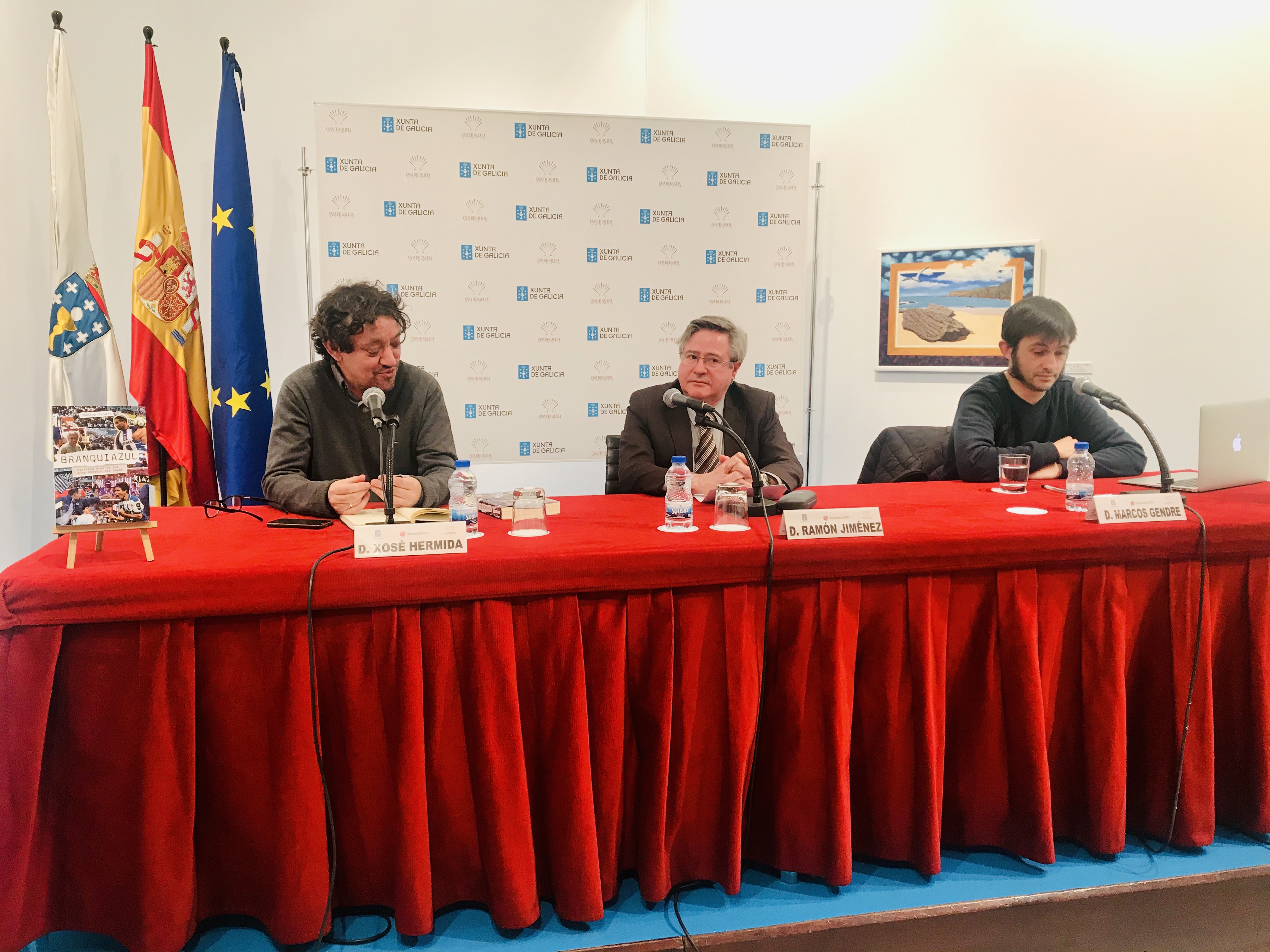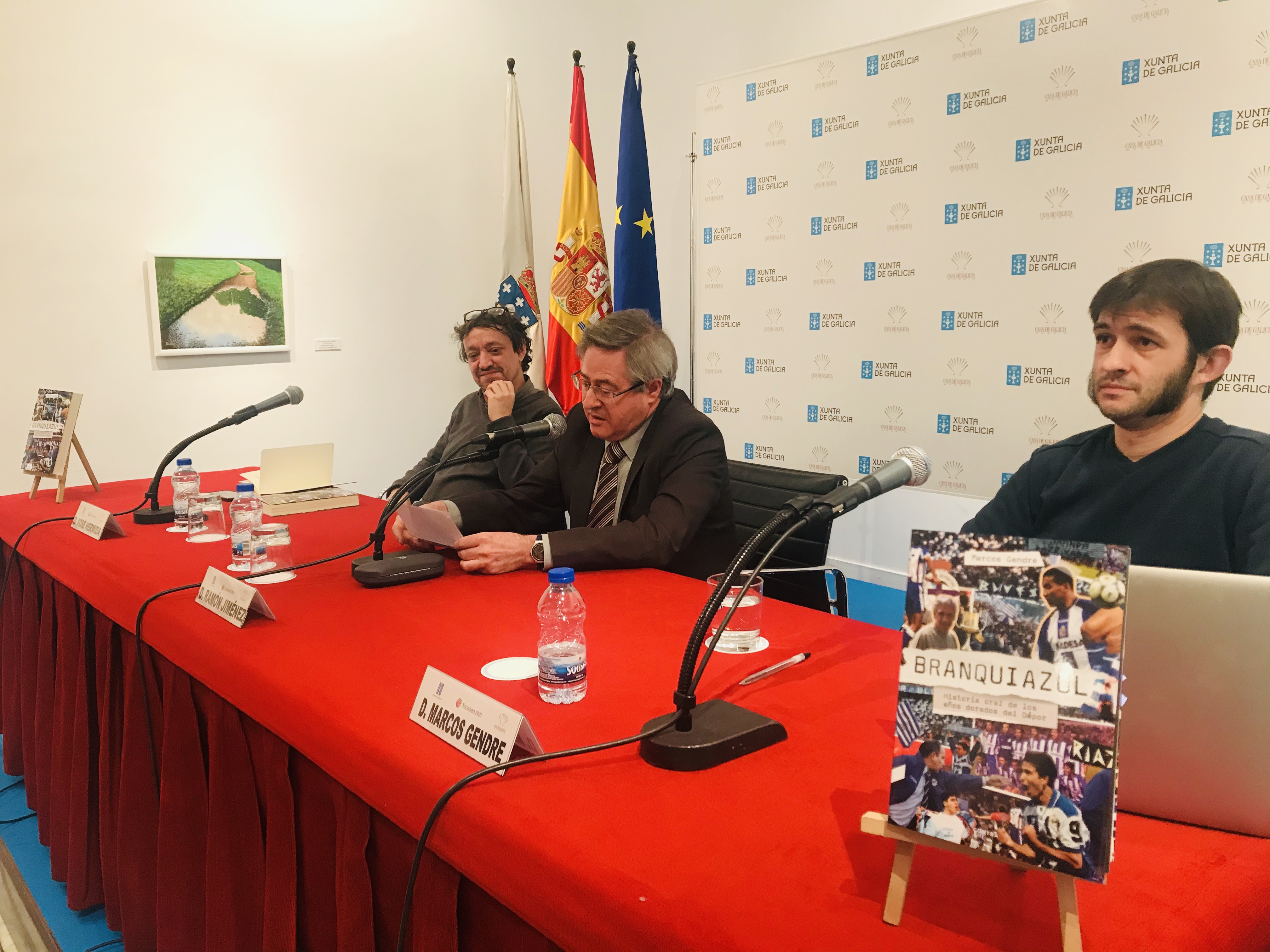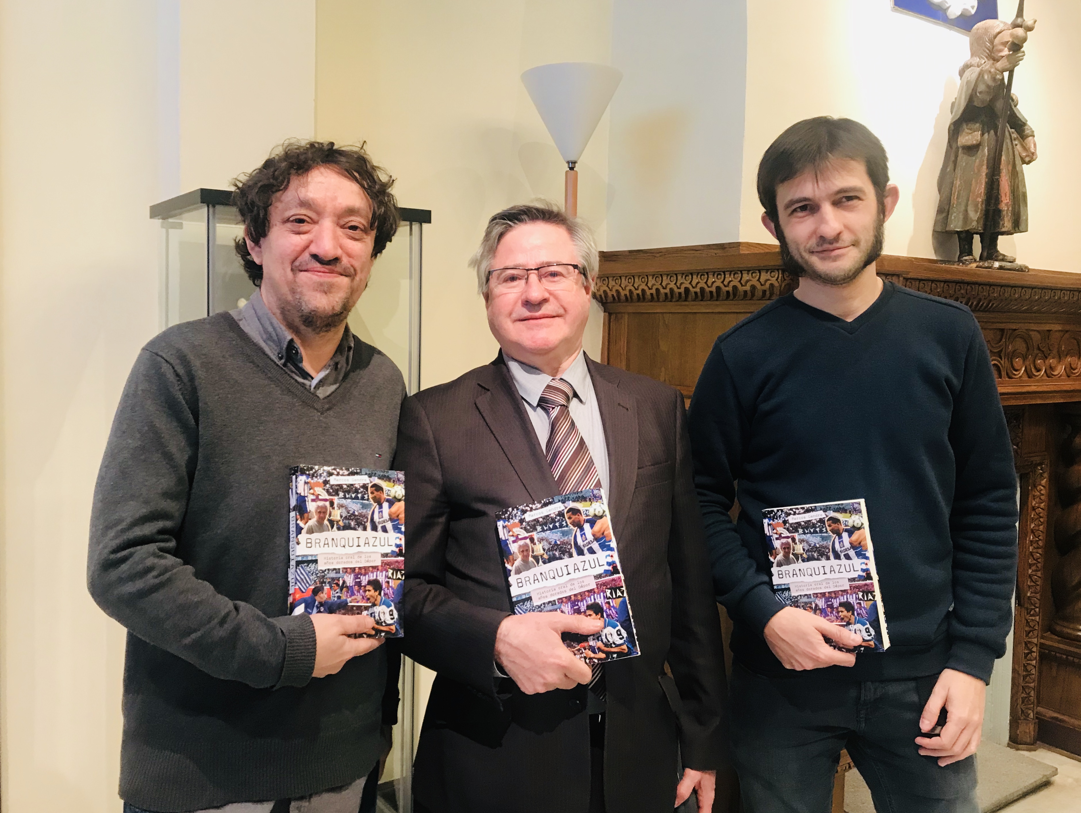 O obxectivo de "BRANQUIAZUL. Historia oral de los años dorados del Dépor", de Marcos Gendre, "non é armar un documental sobre o Dépor e os seus milagres deportivos, senón sobre a xente que arrastrou ao club e que o adoptou con orgullo vital de sentirse coruñés, e sobre as luces e as sombras dunha viaxe colmada de fazañas imposibles e derrotas épicas", dixo o seu autor esta tarde na presentación da obra que tivo lugar na Delegación da Xunta en Madrid/Casa de Galicia.