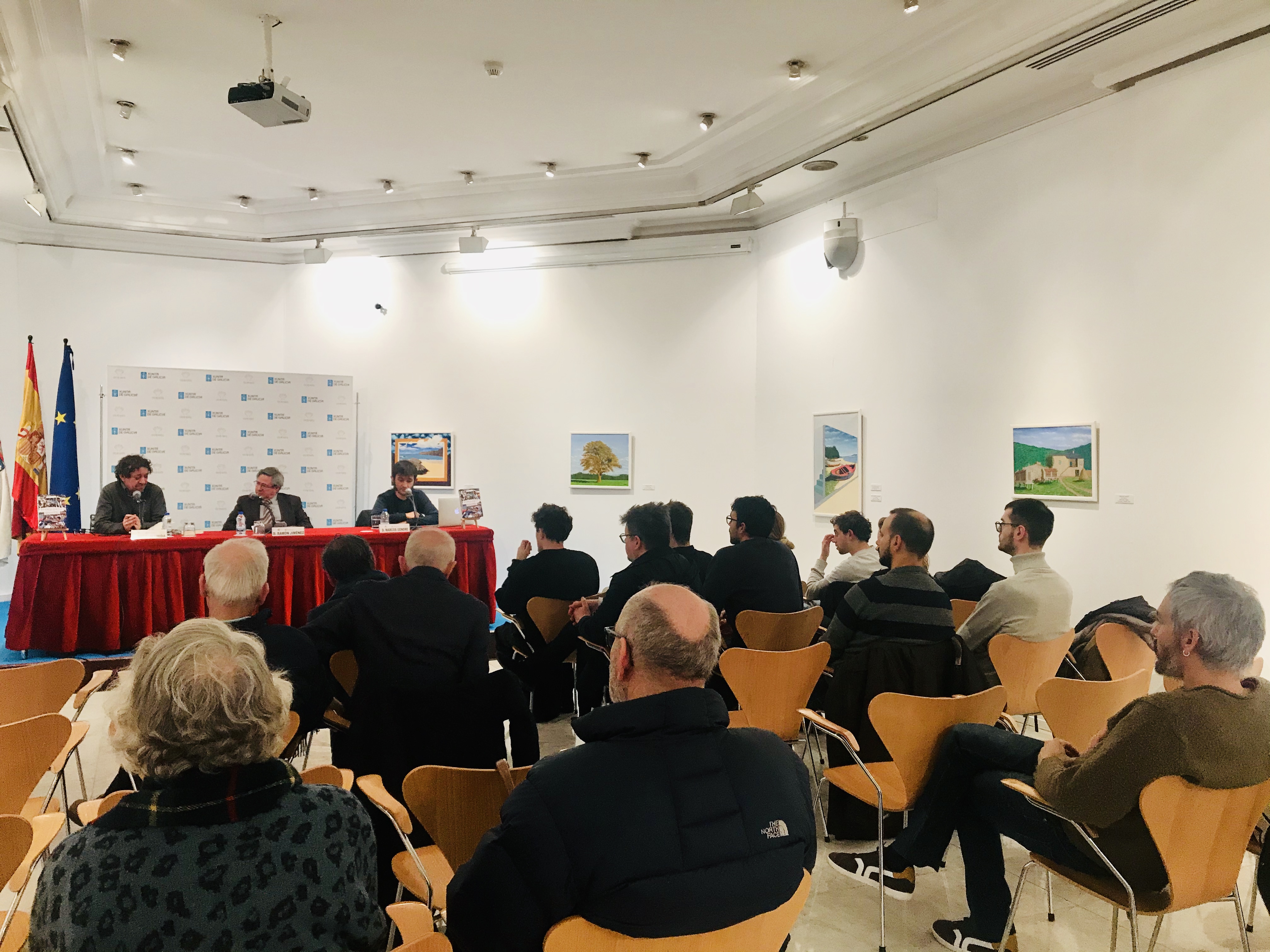No acto interviñeron, xunto con Marcos Gendre, o coordinador de Actividades da institución Ramón Jiménez e o xornalista Xosé Hermida.