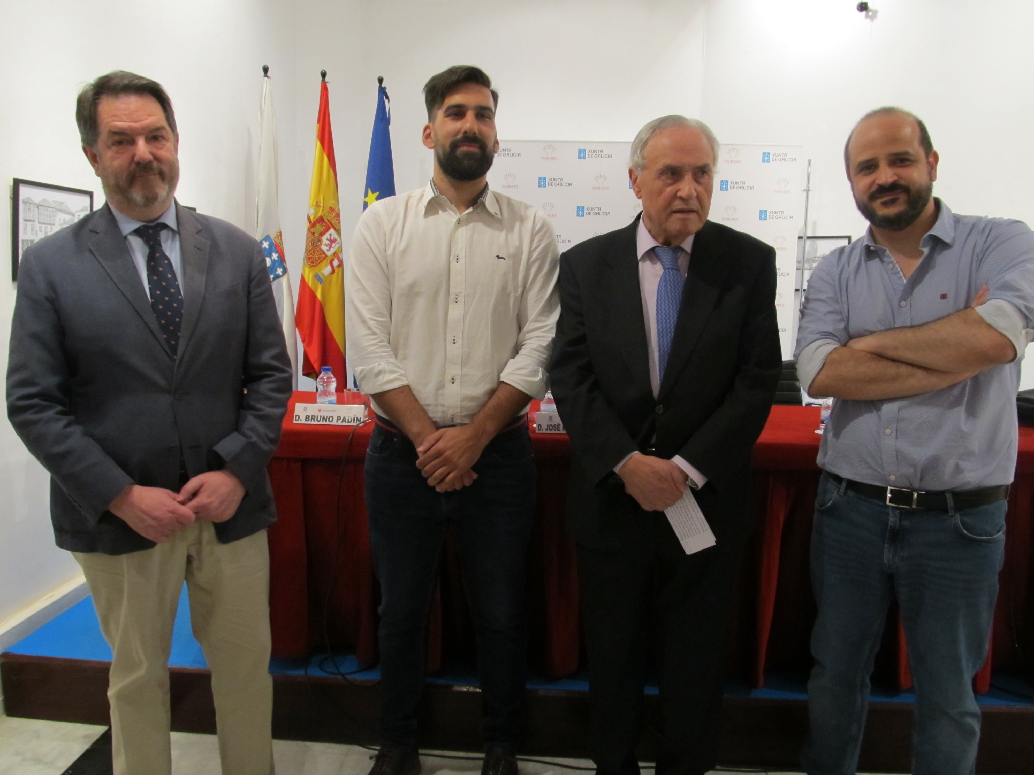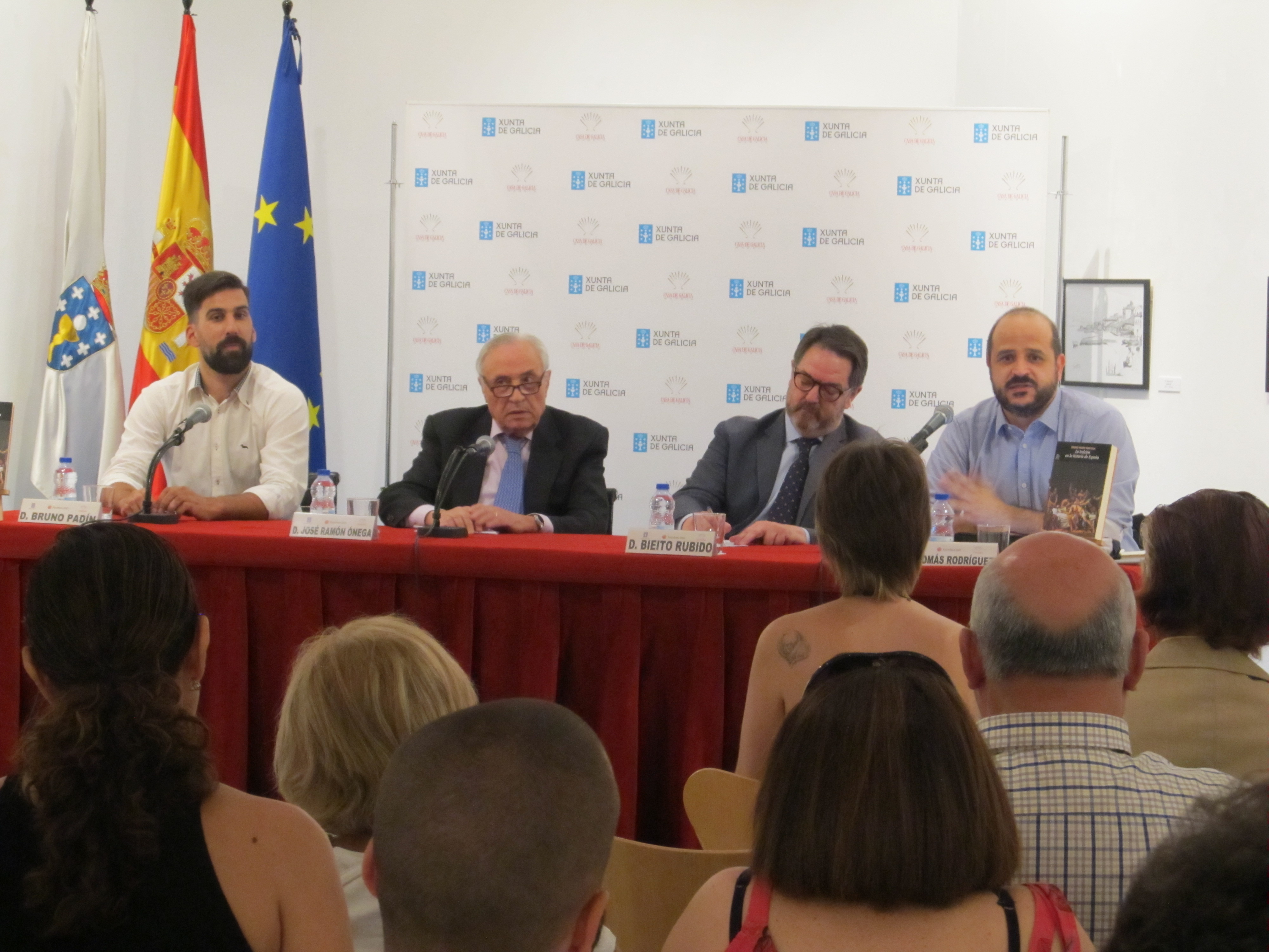 Acompañaron na presentación a Padín o editor, Tomás Rodríguez, o director do diario ABC, Bieito Rubido, e o delegado da Xunta e director da Casa de Galicia, José Ramón Ónega López.