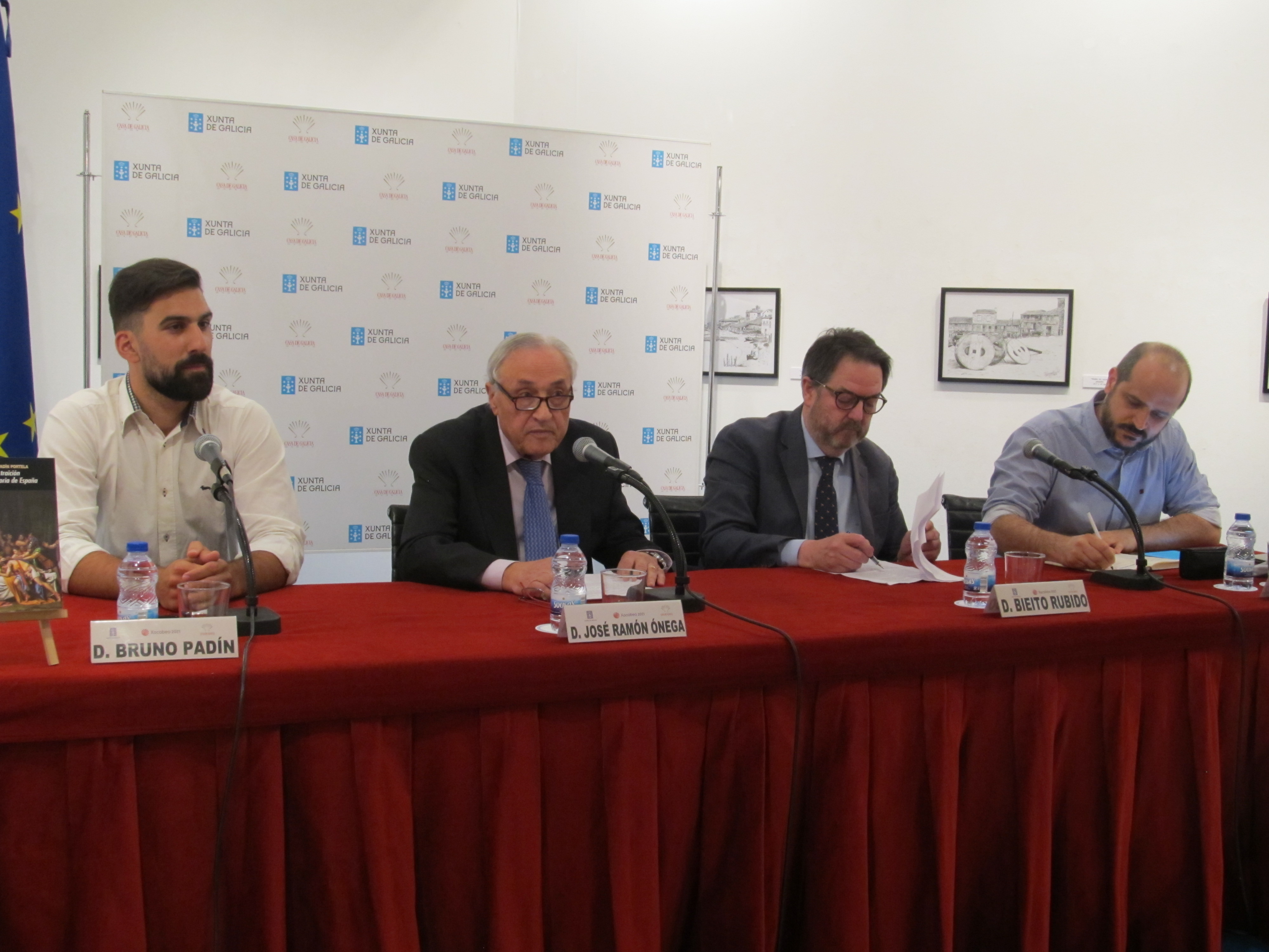 Ónega presentou aos intervenientes e adiantou sobre a obra presentada que "se trata dun libro no que a traizón e o traidor aparecen como unha especie de maldición na historia de España, cuxa nómina de traidores desde a Antigüidade clásica ata a actualidade é extensa". "Está o traidor individual, politicamente activo, como o conde Don Julián; e o colectivo, o movemento sedicioso ou inimigo interno oculto que todo o enturba, como se atribuía aos xudeus. Dous modelos que pasarán da historiografía española ás tres historiografías nacionalistas: a galega, a vasca e a catalá", sinalou o delegado da Xunta, que é autor do libro "Los judíos en el Reino de Galicia".