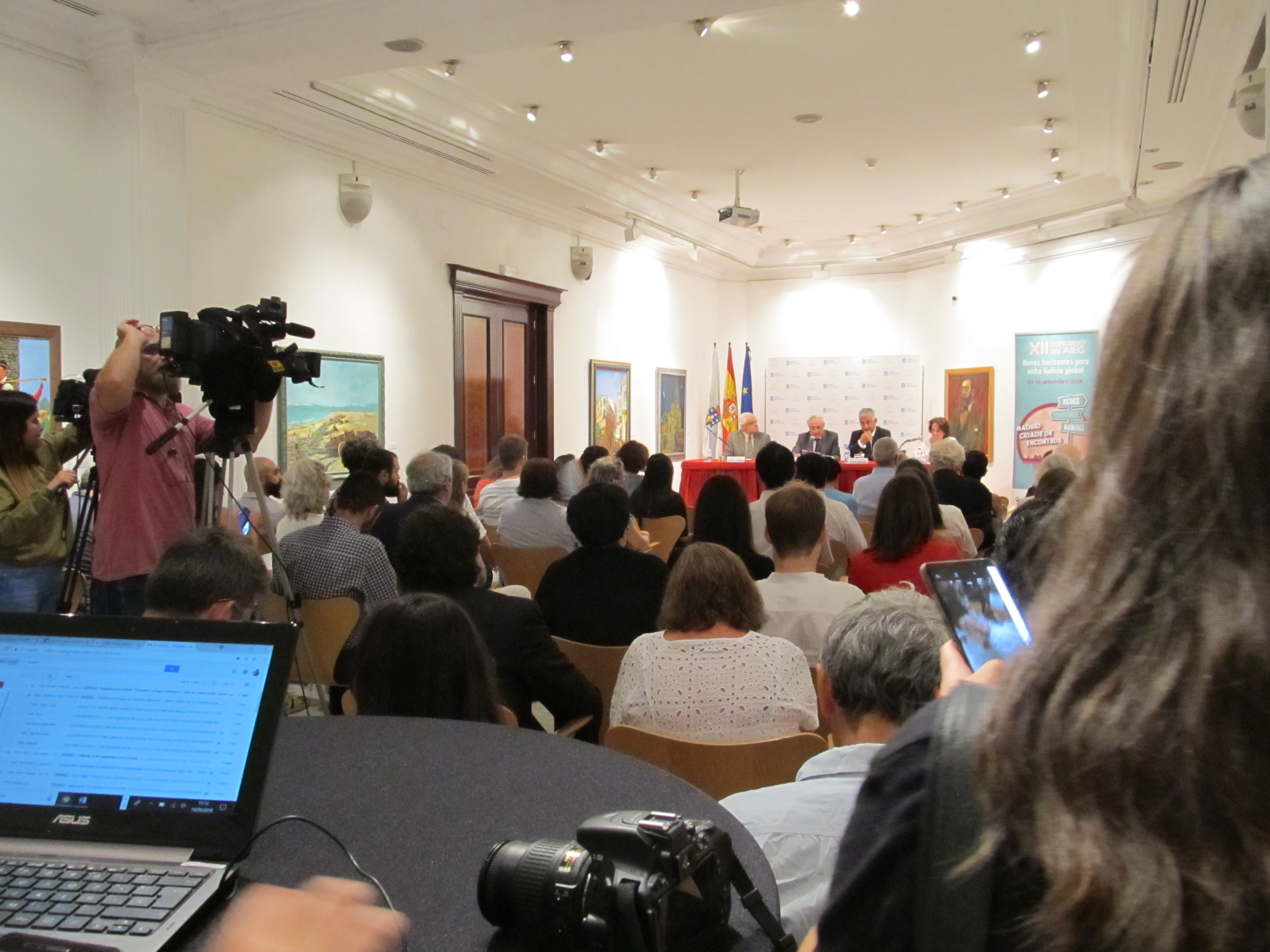 Acompañáronos Carmen Mejía, presidenta da AIEG e directora do Centro de Estudos Galegos da Universidade Complutense, onde se celebrarán a maior parte das sesións do congreso, e Víctor Freixanes, presidente da Real Academia Galega, quen impartiu a conferencia plenaria de apertura deste encontro.